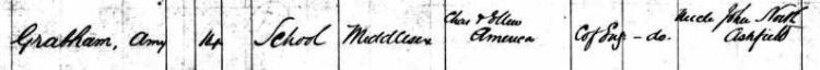 Amy Grabham had arrived a few months earlier (arriving 10 March of 1878 on the Northbrook). She appeared to come alone, aged 14; she listed her uncle, John Britty North as her relation in the colony:
