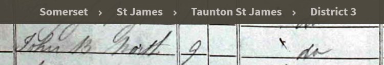 In the 1841 census John (aged 40), Mary (aged 10) and Ellen (aged 1) were living in the Cheapside district of Taunton. His wife Mary and their son John Britty (aged 10) were not listed. There is a 1841 census entry for John B North, a pupil, aged 9, in St James Church School, Taunton.