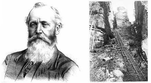 John Britty North and the tracks he built to get the coal from the base to the top of the cliff. From about 1945 the Hammond family ran what has become known as the Scenic Railway, taking visitors up and down what has been dubbed the steepest passenger railway in the world, an incline of 52 degree at its maximum.