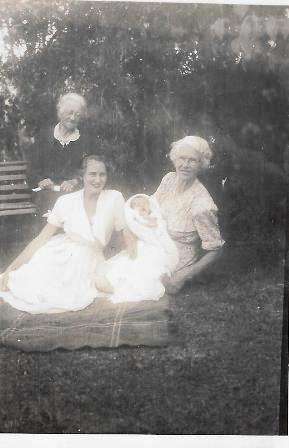 This photo shows 4 Flockton generations: (Isabel) Phoebe (in black), her daughter Phyllis, great-granddaughter Cynthia and Cynthia’s oldest child, taken in 1953: