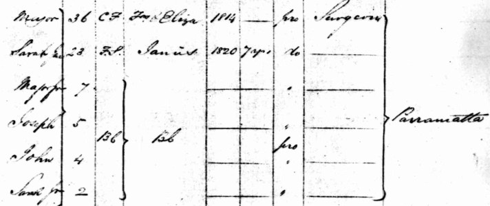 01. Joseph (1806–1875) married Sarah Hannah Peisley on 25 Apr 1829 at Parramatta; there were 9 children.