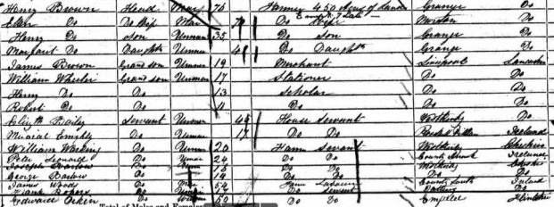 We also know little about Henry and Robert. In the 1971 census Robert turns up with his brother William as lodgers at 92 Canning St, Everton. William is described as a wine merchant’s clerk, age 27; Robert is a general merchants clerk, age 21. These dates are correct given the census was taken on the night of 02 Apr 1971:
