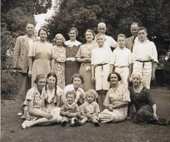Those identified are Henry, Maud, Mary, Mrs Kingsbury; Peter (second lad from left), Bob and Joan Kingsbury (who married Brian Brennan and so became Anne’s sister-in-law)
